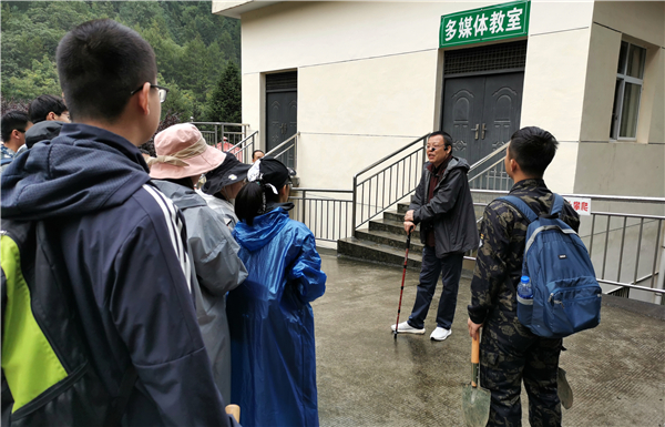 雨小的空档里,老师们带着同学远离河道到去采集辨识一些动植物,讲解土壤学、气象学。