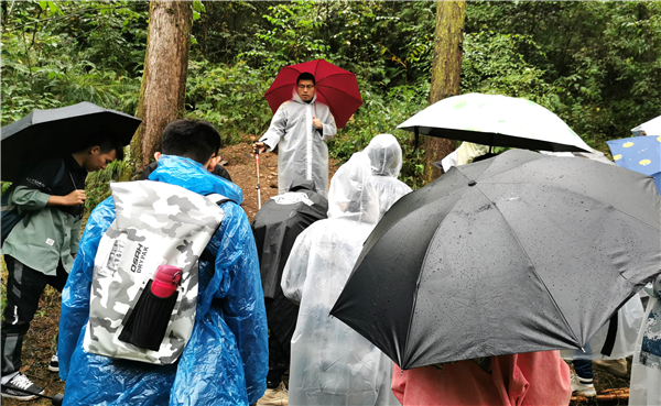 9月3日上午,雨开始小一点,老师们组织同学抓紧去野外,我也跟随其中。这支队伍由生命学院赵亮老师、刘虎岐老师,林学院侯琳老师和资环学院代允超老师4位带队老师团队授课,他们冒着雨,耐心细致给同学们讲解,全体师生的鞋都湿透了,有的学生裤子都湿了大半截,但老师们很敬业,同学们也学习得很认真,边听边用手机做笔记。