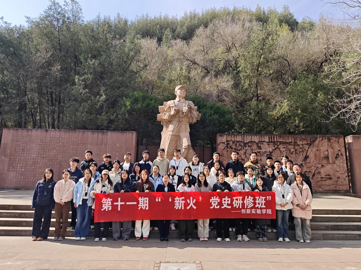 为深入学习贯彻习近平新时代中国特色社会主义思想,传承和弘扬延安精神。2025年11月1日至2日,创新实验学院组织第十一期“‘新火’党史研修班”前往革命圣地延安开展实践学习。本期研修班共有入党积极分子和党团班干部在内的40名学员参加学习。学员们先后参观了杨家岭革命旧址、梁家河、延安革命纪念馆,观看了红色演艺《再回延安》,并在张思德同志追悼会旧址开展了纪念活动。此次实践学习通过实地参观、现场教学、情景体验等多种形式,让同学们深刻感悟延安精神,汲取奋进力量。