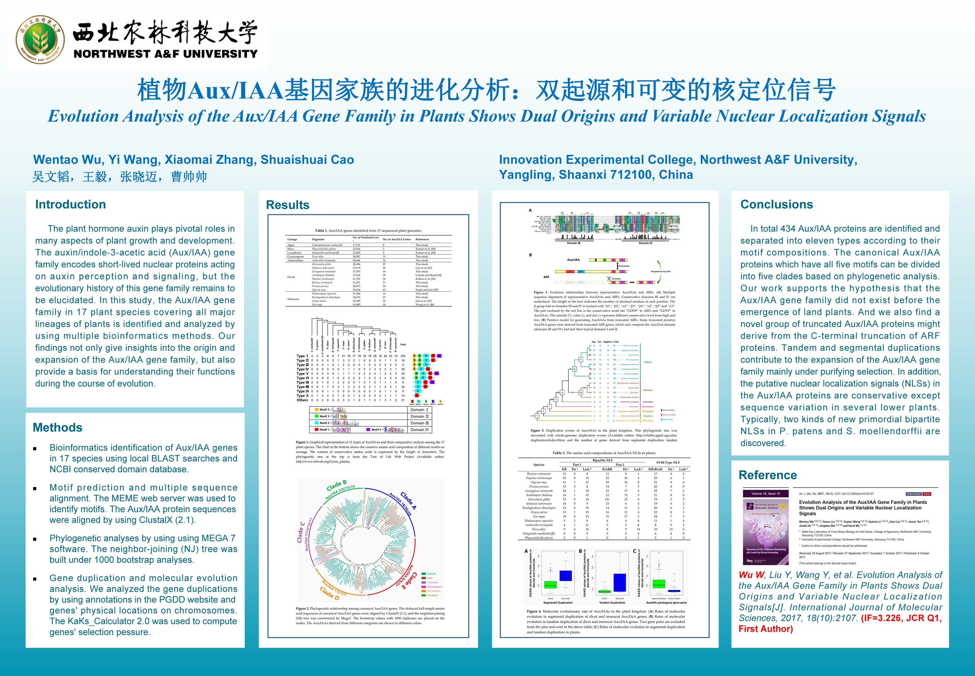 5 | 植物界Aux/IAA基因家族的进化分析:双起源和可变的核定位信号 | 创新学院 | 吴文韬 | 王 毅 张晓迈 曹帅帅 |