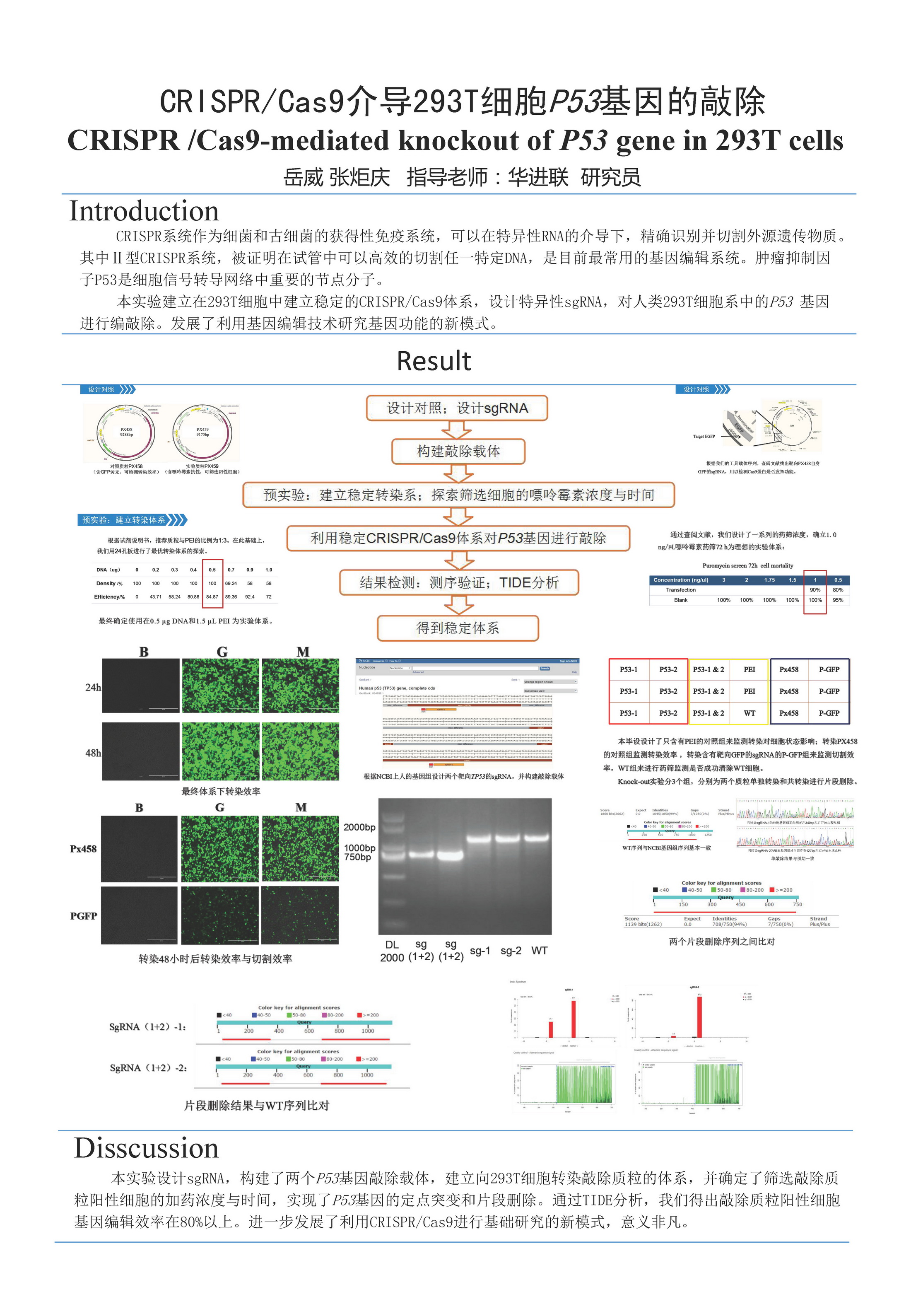 19 | CRISPR/Cas9介导293T细胞P53基因的敲除 | 创新学院 | 岳 威 | 张炬庆 | 三等奖 |