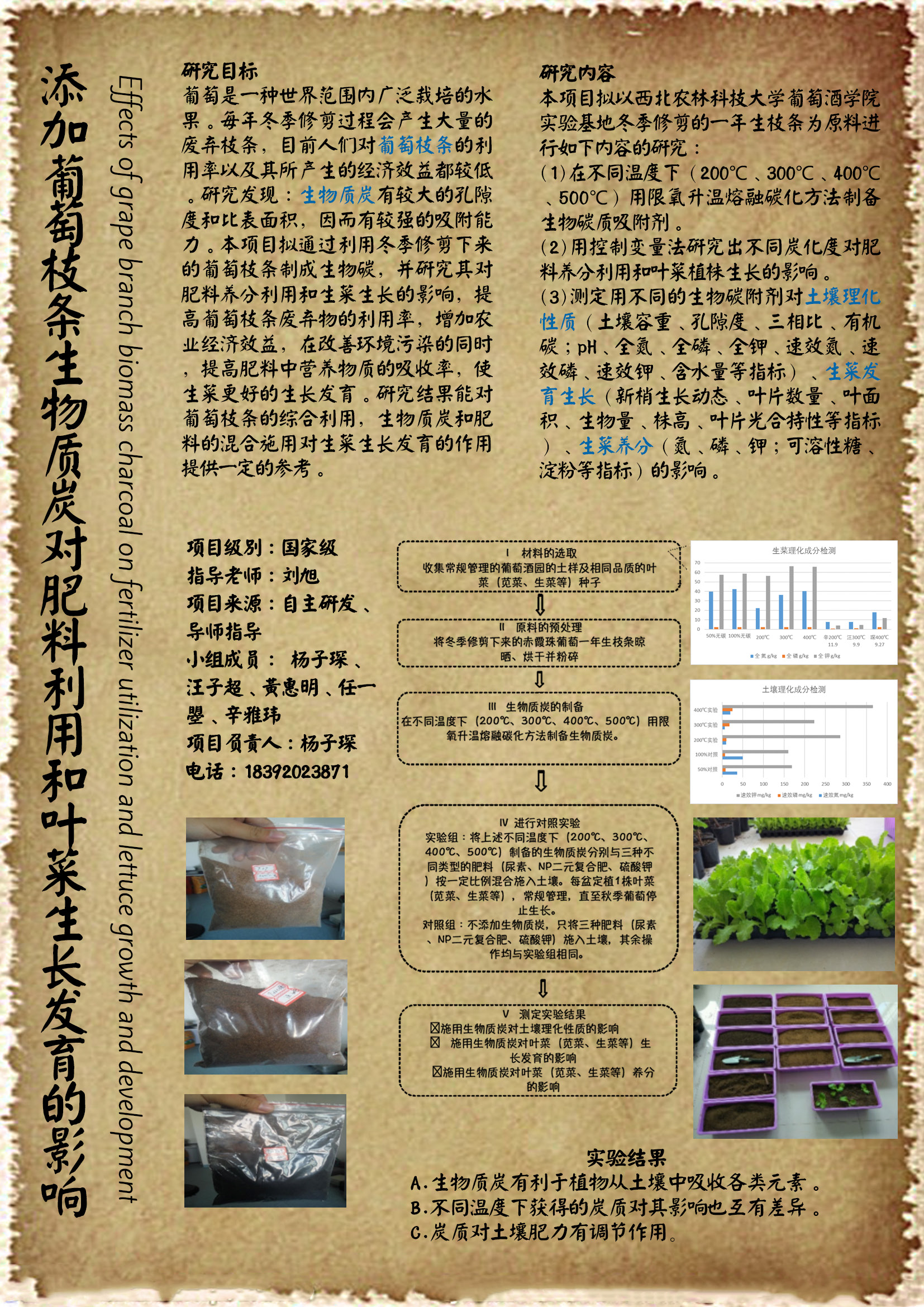 9 | 添加葡萄枝条生物质炭对肥料利用和葡萄幼苗生长发育的影响 | 葡酒学院 | 杨子琛 | 汪子超 黄惠明 任一曌 辛雅玮 |