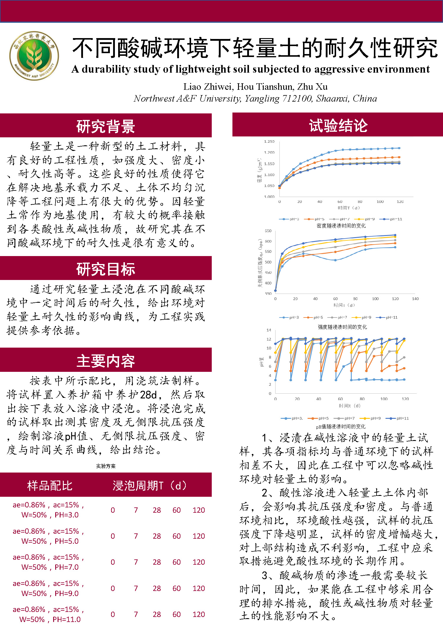 39 | 不同酸碱环境下轻量土的耐久性研究 | 水建学院 | 廖智威 | 王 昱 娄哲瀚 闫亚廷 朱 旭 |