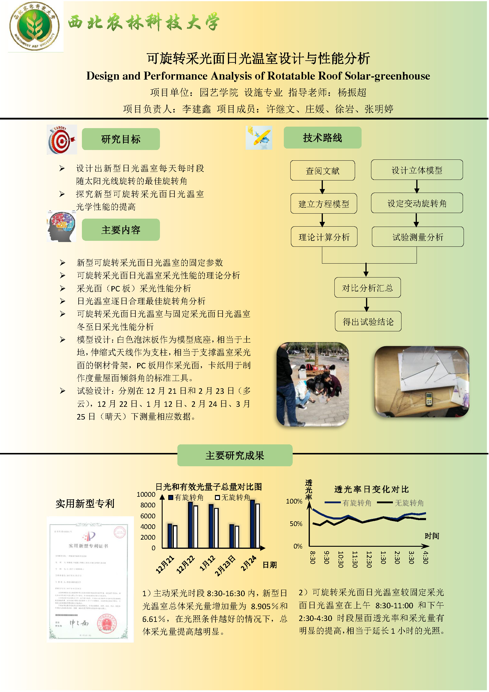 40 | 可旋转采光面日光温室设计与性能分析 | 园艺学院 | 李建鑫 | 许继文 庄 媛 徐 岩 张明婷 |