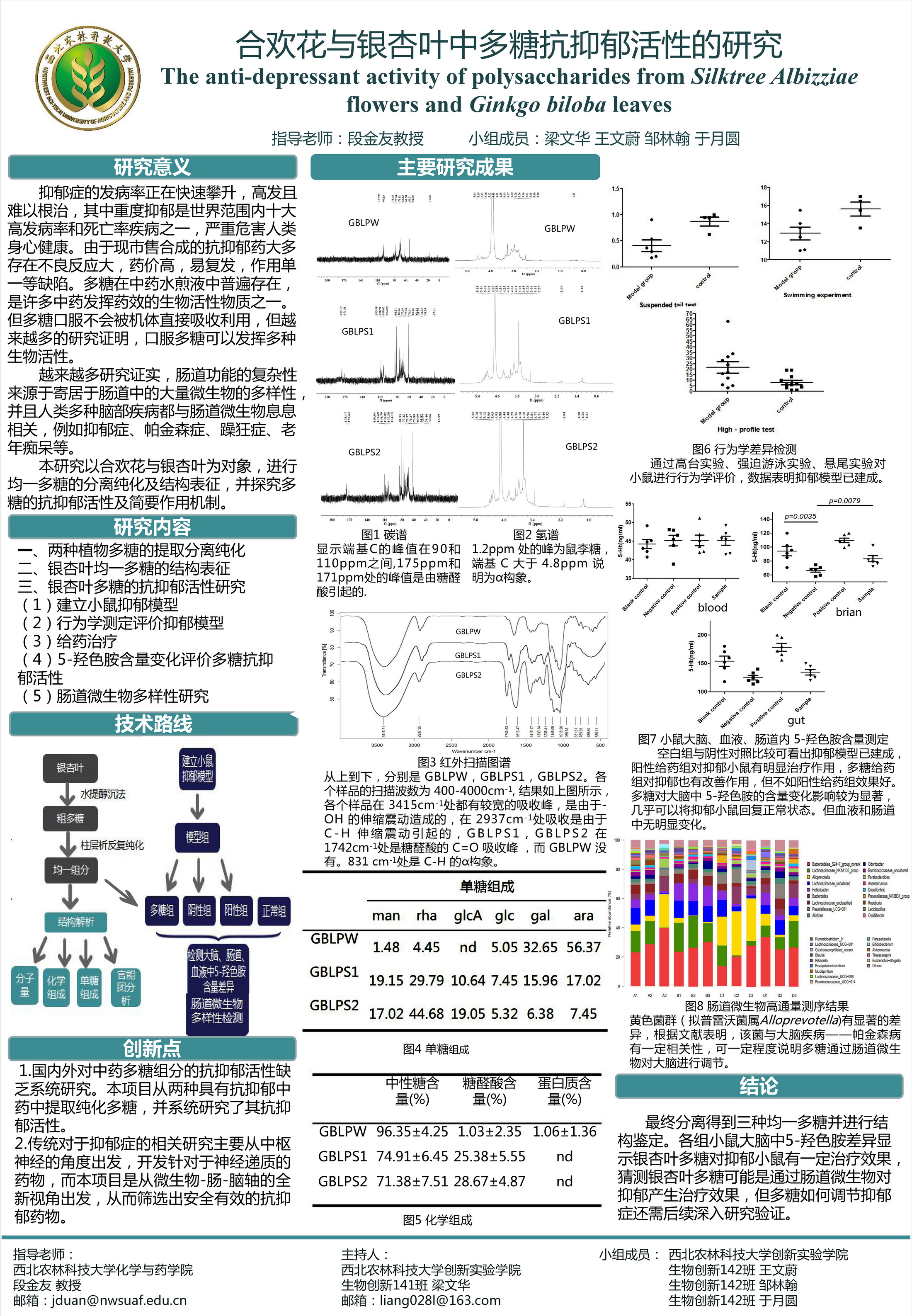 8 | 合欢花与银杏叶中多糖抗抑郁活性的研究 | 创新学院 | 梁文华 | 王文蔚 邹林翰 于月圆 |