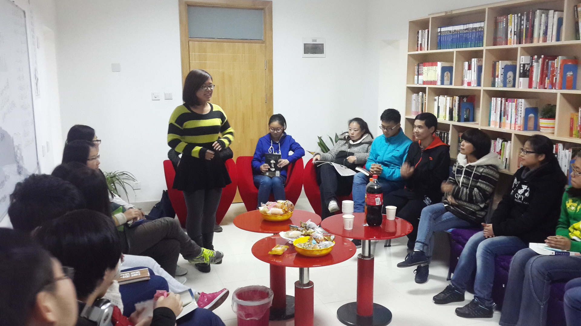 交流会上,书虫们首先介绍自己阅读的、对自己影响较深的中外文化相关的书籍,并向其他书虫们推荐。其次,书虫们采取畅所欲言的形式,交流书籍带给自己的收获、对书屋未来的期望与对自己未来的构想。最后,书虫们进行了“讲故事•猜书名”活动。书虫们热情踊跃,气氛十分融洽。