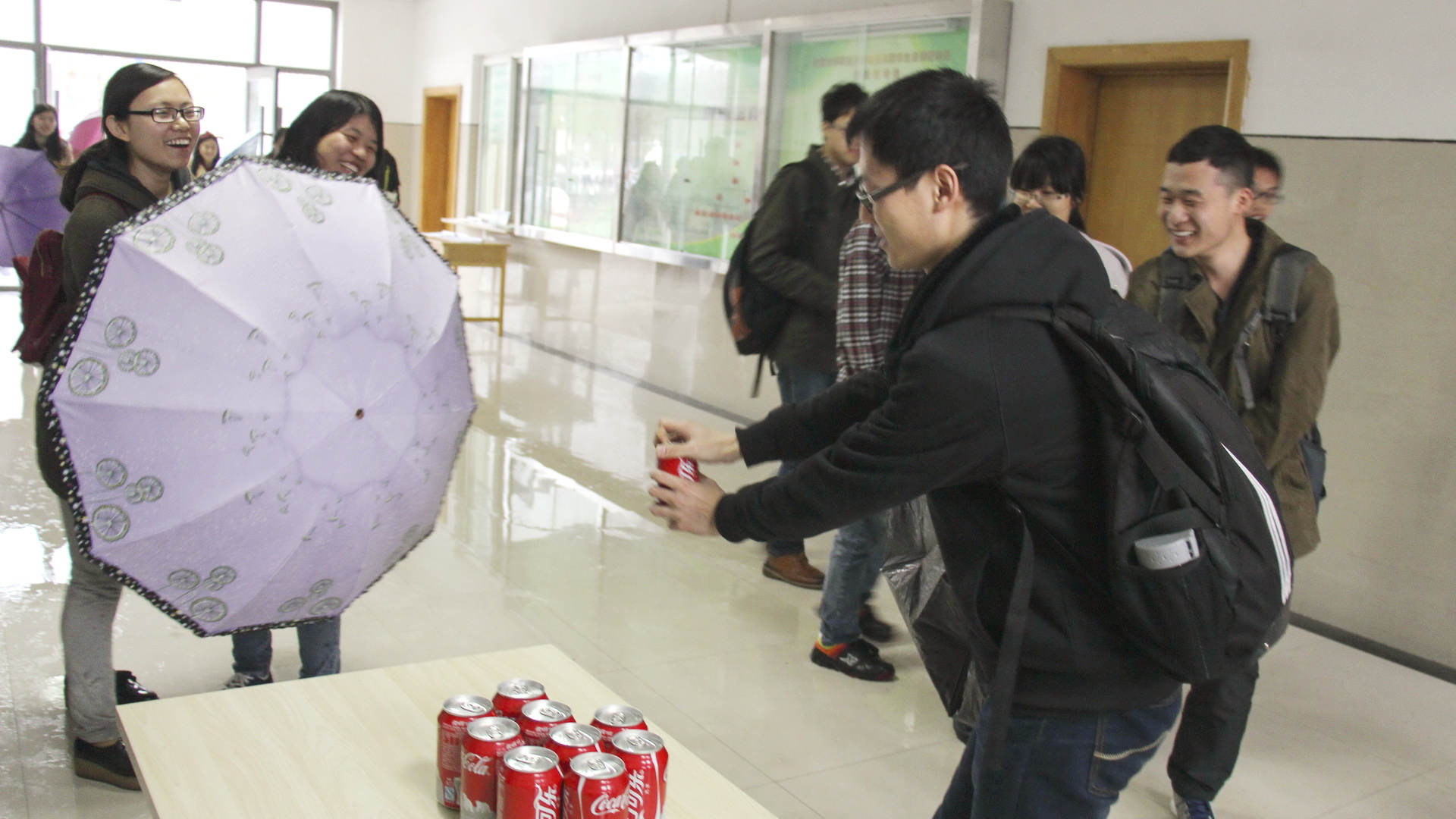 活动分为三个环节。“真假生物趣闻”环节,志愿者在书院公告栏上张贴了四张生物科普“趣闻”海报,让同学们一辨真假,培养学生主动思考的能力。“幸运娱人”环节,同学们可以任意揭开纸签,根据纸签上的规则接受祝福或惩罚。“可乐摇翻天”环节,志愿者们将摇晃过和未摇晃过的可乐混到一起,让同学们选择,随机产生幸运学生,为大家送上祝福。现场气氛温馨热闹。