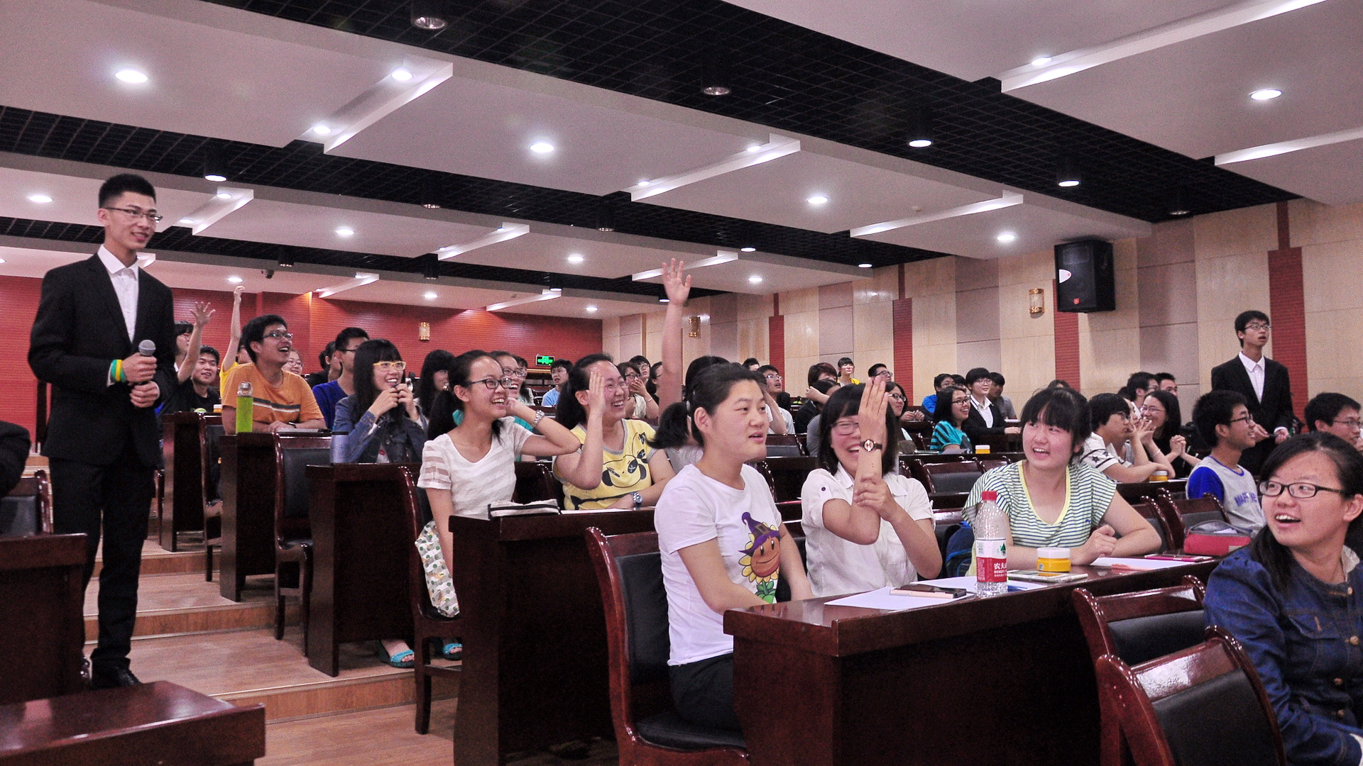 竞赛分为初赛和决赛两个阶段。初赛通过考试的形式考查学生对基础知识的记忆能力,经过激烈角逐,12组共计36名学生进入决赛。决赛分为轮答赛、抢答赛和众答赛三个环节。轮流答题环节,同学们沉着冷静,认真答题;抢答环节,同学们争先恐后,气氛热烈、活跃;众答环节,现场同学积极抢答,表现自己的真才实学。最终,创新实验学院汪熙,何梦颖,吴梦春三名同学荣获本次知识竞赛第一名。赛后,同学们就竞赛的知识点进行讨论,学以致用,呈现出良好的学习风气。