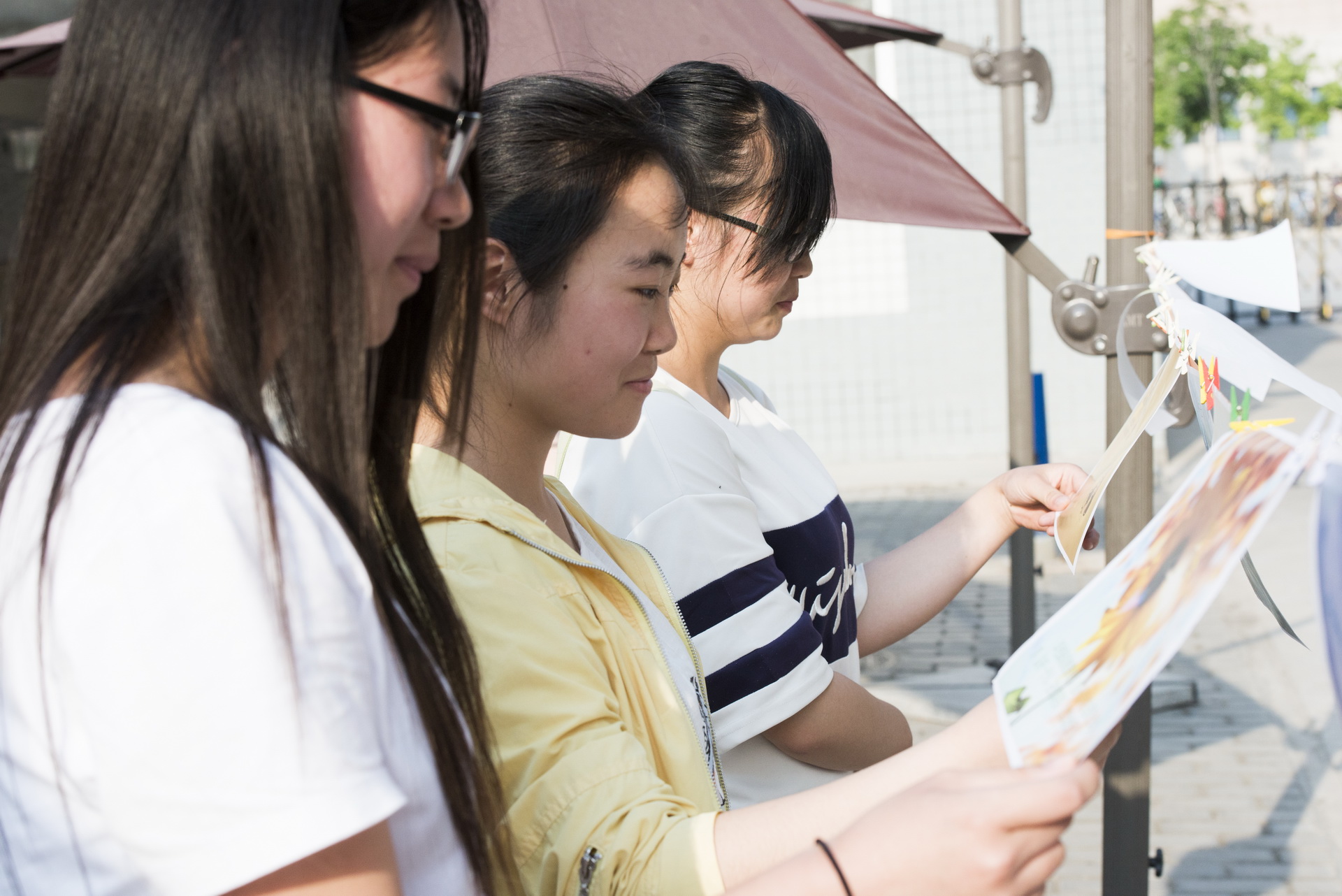 “一米阳光”心灵鸡汤——活动期间,书院文化广场定期悬挂“一米阳光”心灵鸡汤语录,涉及基本心理常识、心理压力原因及疏导方法、励志语录等内容,使同学们利用课余时间增长知识,陶冶情操。驻足参观的杨入?同学表示:“相信总有一段文字触碰到自己的心灵,激励自己,这就是进步。”