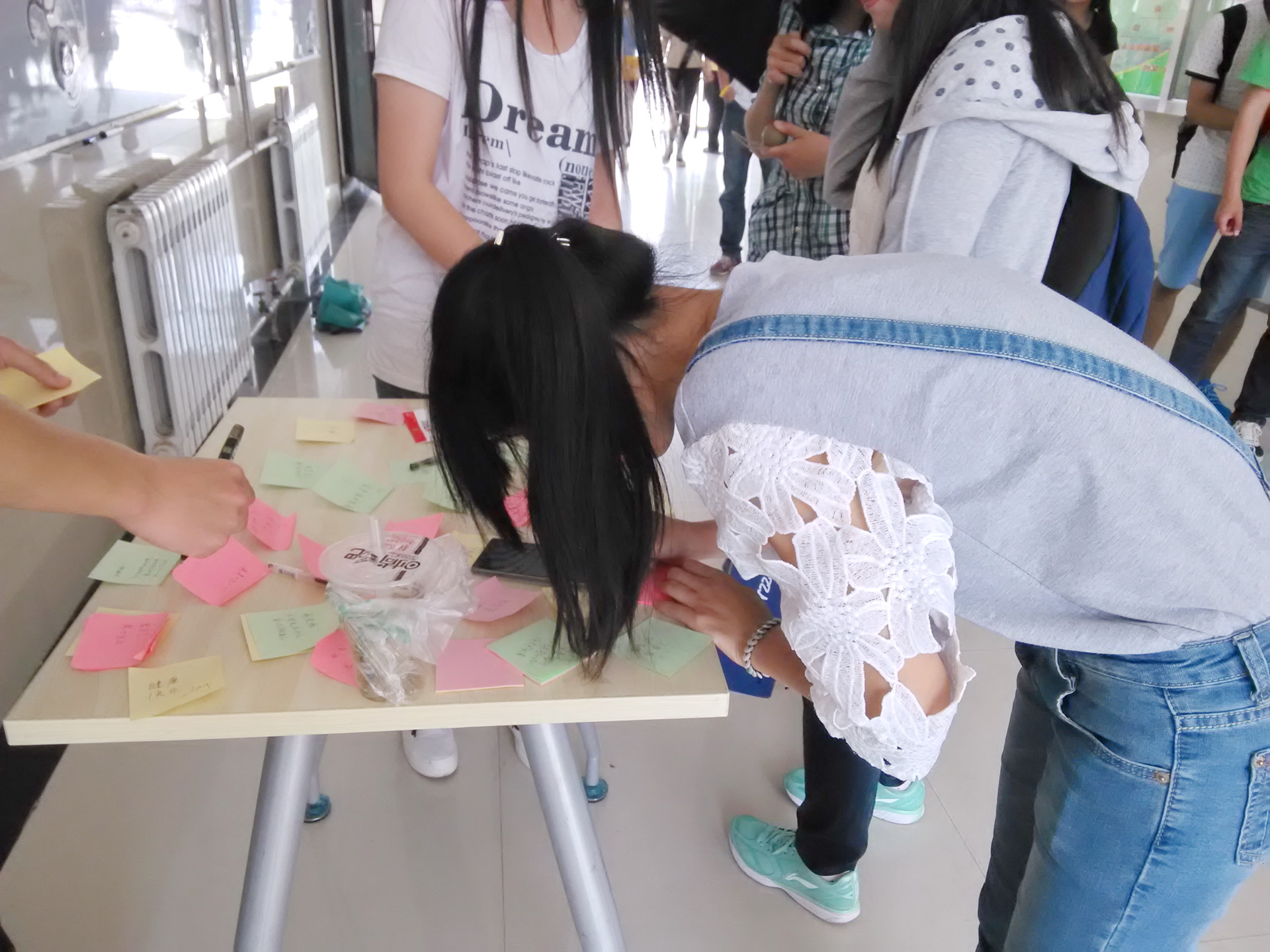 书写心灵展示板——在右任书院走廊里放置“心灵展示板”,书院学生将自己的心愿、目标、计划以及对朋友、亲人的祝愿写在展板上,传递自己的心灵祝愿,增强书院学生的沟通与交流。通过这种交流,书院学生很快找到志同道合的朋友,共同成长,一起进步。