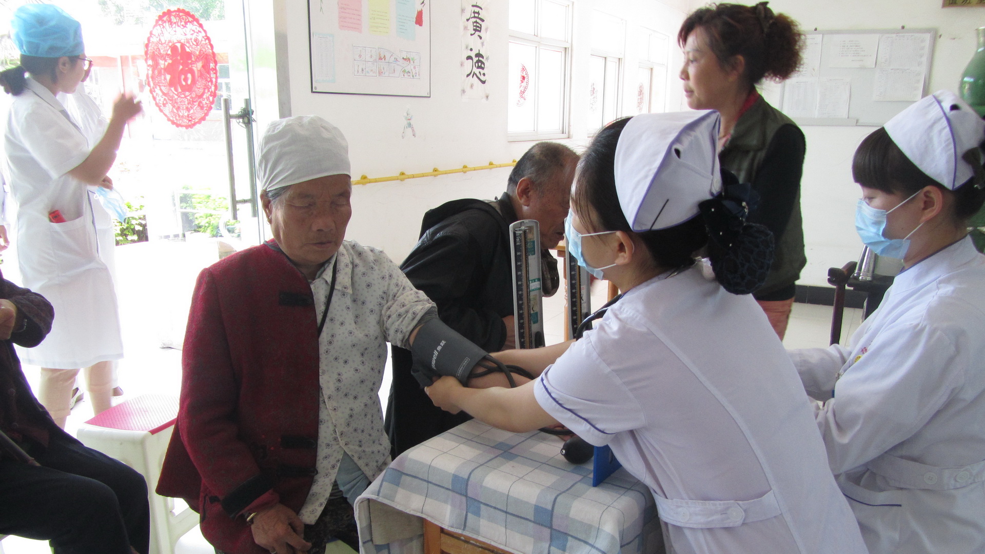 正值春夏季节交替,是疾病的多发期,为保证老人和儿童拥有健康的身体,右任书院志愿者们积极联系杨凌示范区医院,介绍具体情况,并邀请医护人员前往福利院进行义诊并对日常护理知识进行讲解。倡议得到示范区医院的大力支持和帮助,21名医护人员来到福利院,义务为老人和儿童做测血压,查口腔,测血常规等常规检查并向福利院工作人员讲解日常护理方式及注意事项。