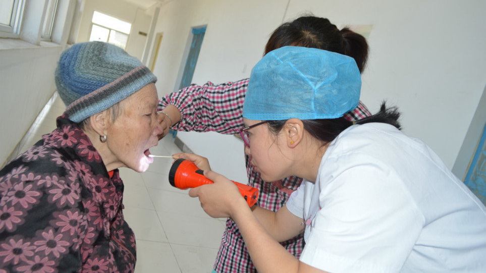 为老人检查身体