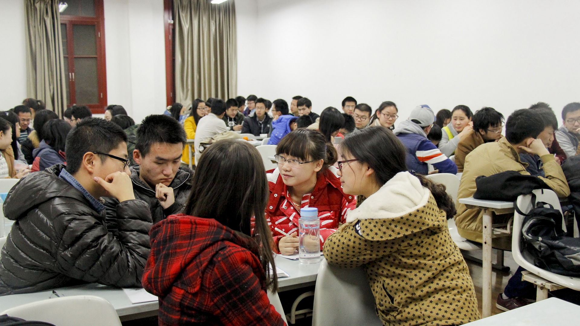交流会以班级为单位展开,各班级邀请高年级优秀前辈以报告会、分小组讨论等多种形式进行充分交流,现场气氛严肃活泼。多样的形式,独到的经验和风趣幽默的回答使在场新生受益匪浅。