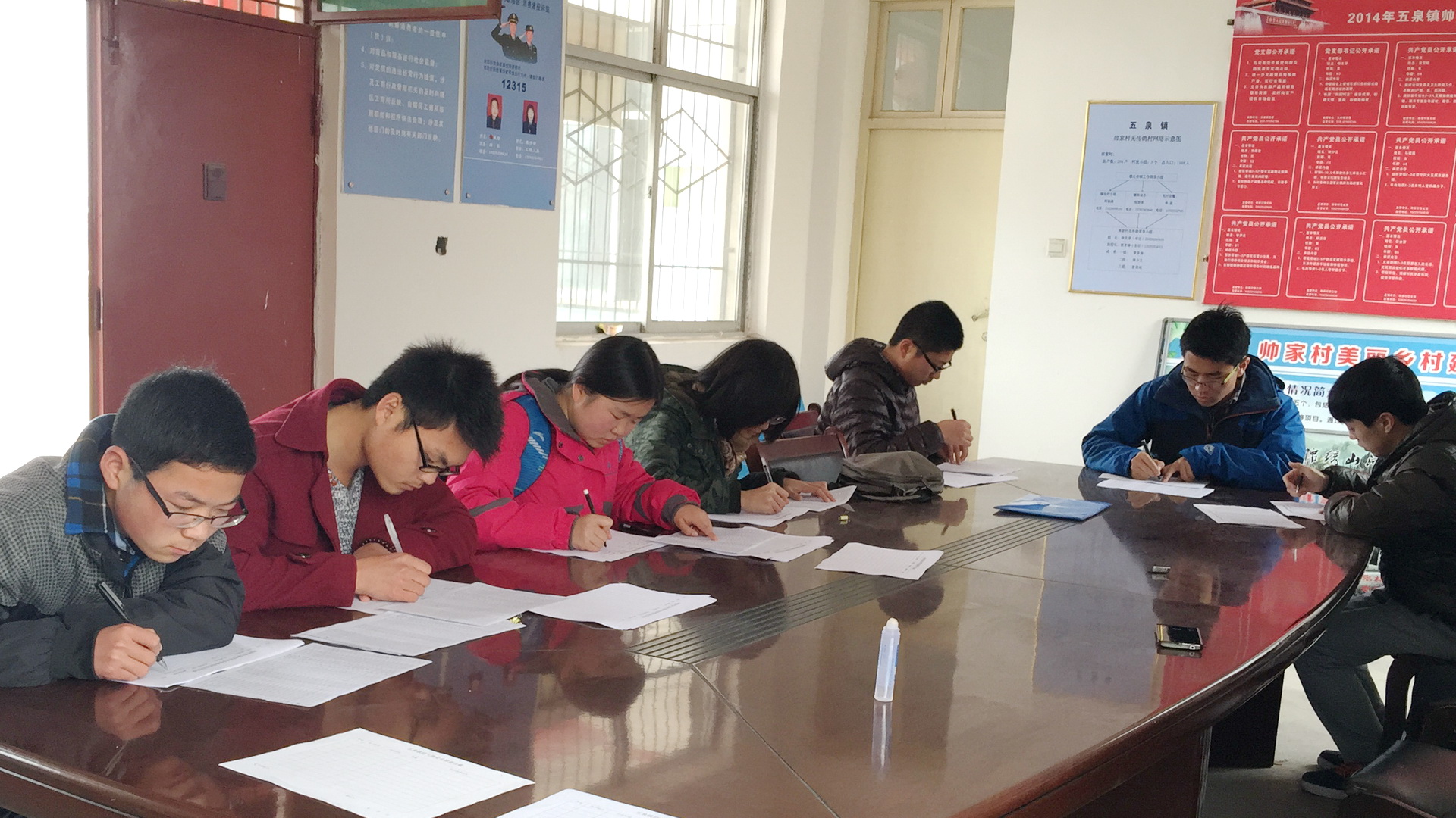 在帅家村,应村民要求,村助及其志愿者们协助村民进行换届,他们按村主任的安排,合理分工,密切合作,帮助村民们统计投票、整理文书、完成合法投票人的筛选和统计等任务,获得村民们的一致好评。