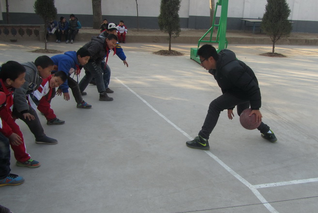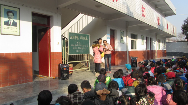 在新集小学,志愿者们将孩子们分为两组,低年级学生观看文艺表演,高年级学生学习体育项目。表演组志愿者为孩子们精心准备了独唱、小提琴独奏、舞蹈、讲故事以及与孩子们互动交流,孩子们积极参与并掌声连连。体育组志愿者则教孩子们篮球、足球等最基本的体育项目,并展开拔河、跳大绳等团体比赛,鼓励孩子们学会团队一致、合作共赢。
