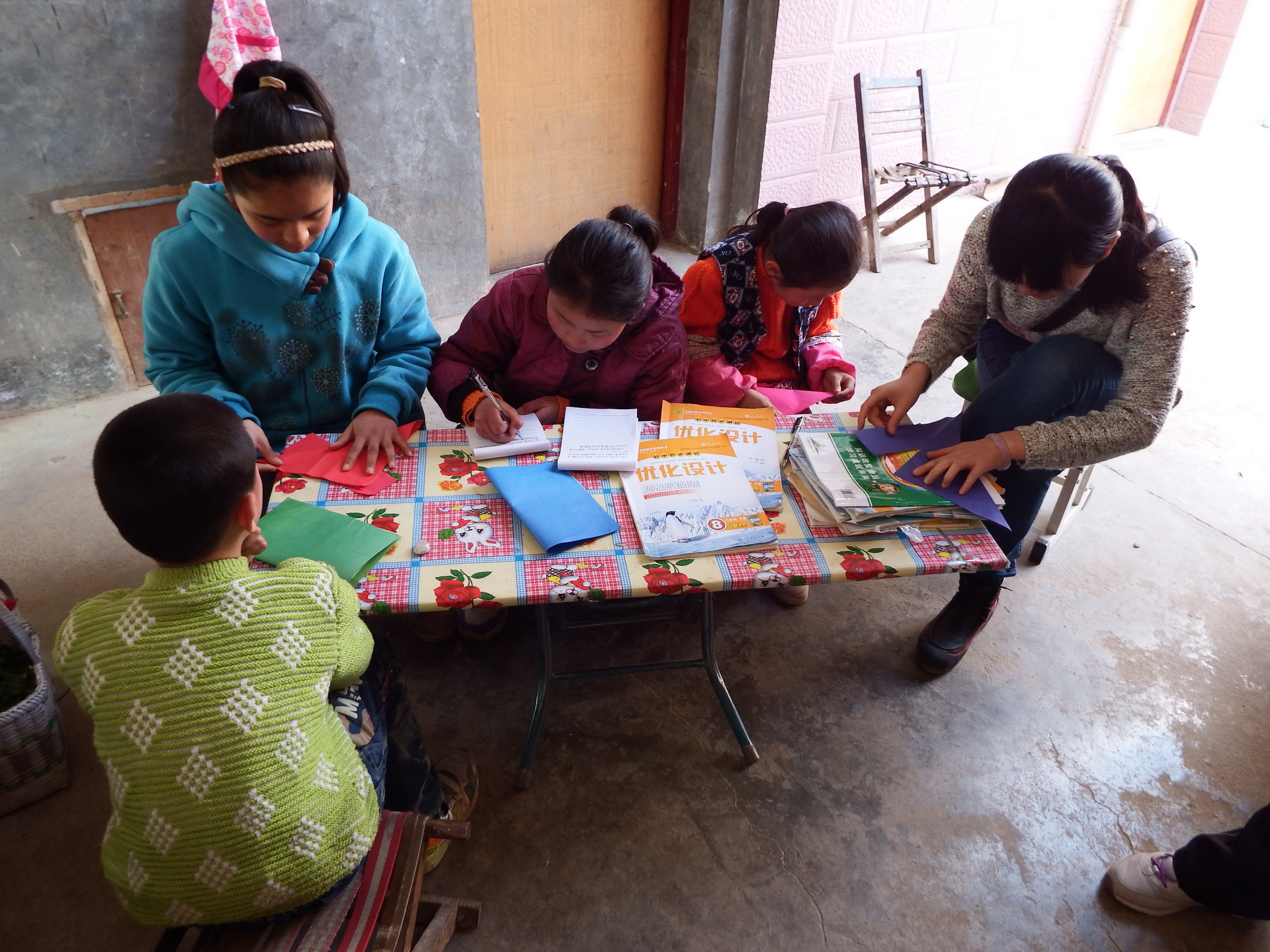 村助们根据前期的走访调查,志愿者们纷纷行动起来,快速的找到了15名所需帮助的孩子。首先带给孩子们的是知识的洗礼,孩子们不懂即问,开心求教,志愿者们也做到了耐心指引,细细讲解。为了拉近与孩子们心灵的距离,志愿者还和孩子们进行了折纸游戏,整个支教过程在一种融洽,温馨而又欢乐的氛围中进行。