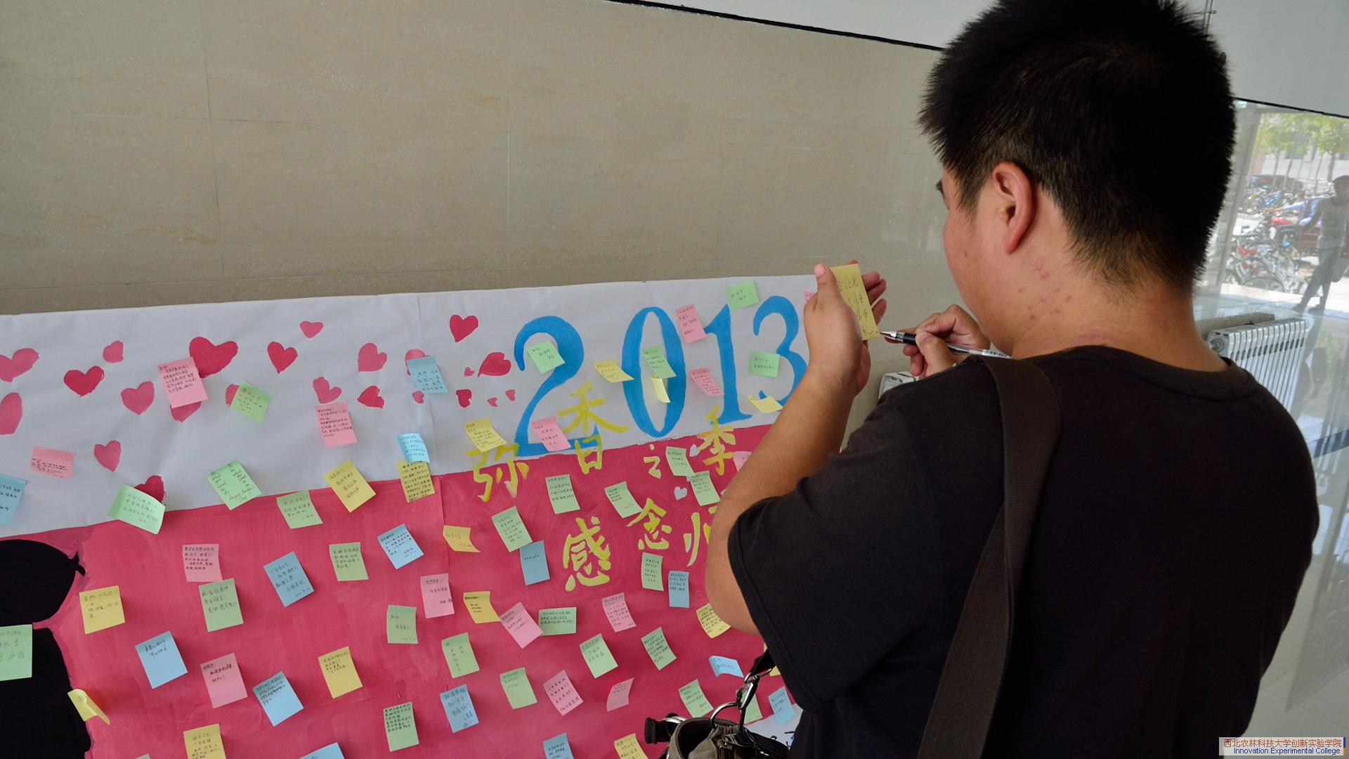 刚刚进入大学的2013级实验班1名新生表达了自己对此次活动的支持:“以前中学时都是私下很腼腆地去表达对老师的感谢,今天这个活动平台让我们可以公开地表达对于一直以来关心、帮助、指导我们老师的感谢和祝福,把心中的爱大声说出来。”