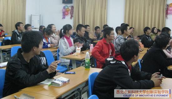 10月29日晚,创新实验学院在一层多媒体教室举办了本学期第一次英语沙龙。此次沙龙以“cold autumn ,warm hearts”为主题,外教Lucase Neally和学院英语学习兴趣小组成员及部分2011、2012级学生共40余人欢聚一堂,听英语、说英语、表演英语节目,度过了一个轻松愉快的英语晚宴。
