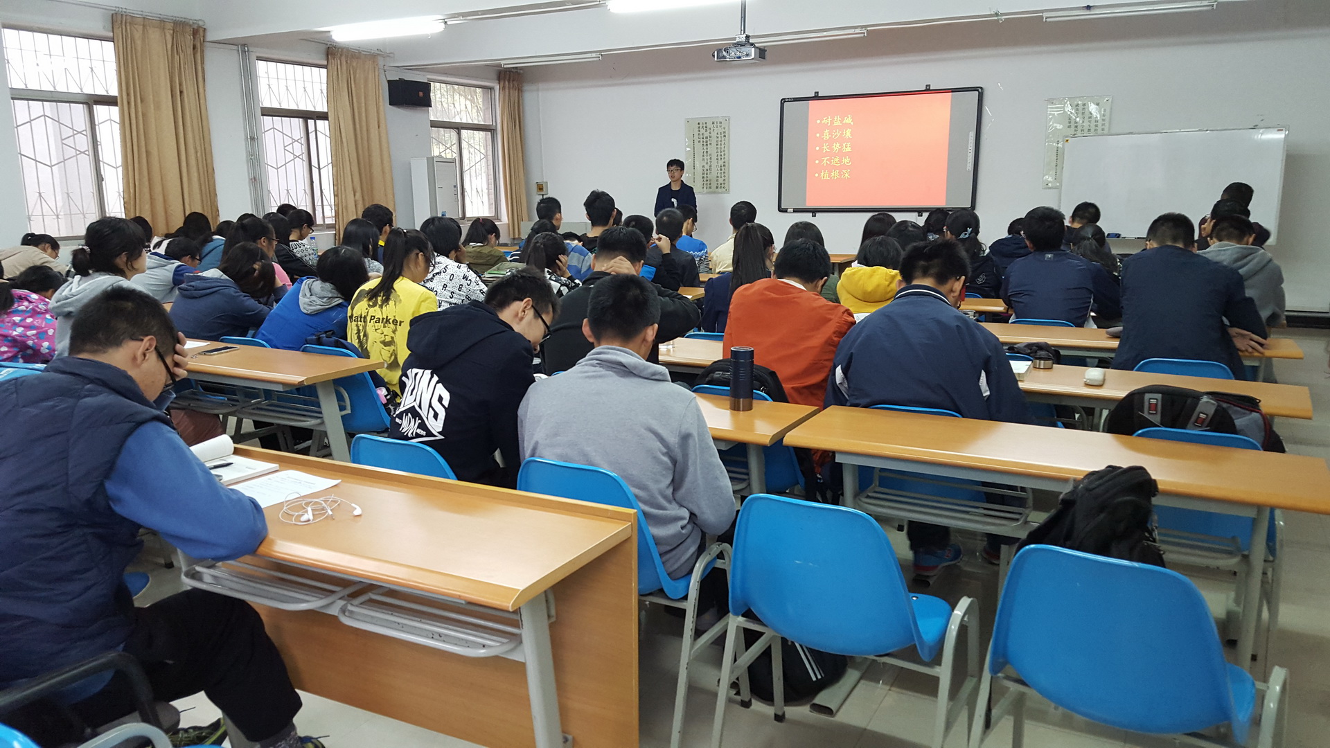 赵硕同学从兰考县的恶劣自然环境出发,从焦裕禄的事迹被人们熟知讲起,通过讲解焦裕禄这位党和人民的好书记的诸多鲜活事例,向在场的同学们传达了 “亲民爱民、艰苦奋斗、科学求实、迎难而上、无私奉献”的焦裕禄精神。此外,他通过党对于焦裕禄精神的高度评价,解读了焦裕禄精神的独特内涵,精彩的演讲,声情并茂的解读,为我院全体新生进行了一场深刻的思想教育。生技1504班曹帅帅同学表示:“以前只知道焦裕禄是个舍身为民的好干部,但今天才知道他的伟大所在,不愧为人民的好公仆,我会努力成为这样的人。”