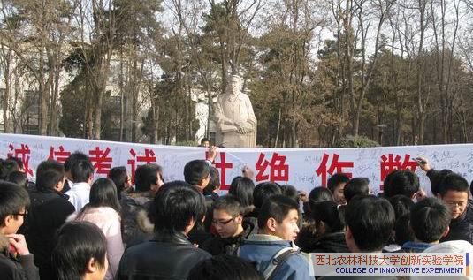在赵洪璋院士塑像前雕塑前,全体学生庄严宣誓:“诚信考试,杜绝作弊!让我们筑起诚信的大堤,制止作弊的泛滥!让我们用自己的劳动换取最香甜的果实,用我们的诚信来回报远方辛苦劳作的父母、老师的淳淳教诲!让我们高呼我们的诚信宣言,我们拒绝暂时的虚荣!我们拒绝作弊的恶俗!爱我学院、爱我校风,诚信考试,从我做起,杜绝作弊,共创卓越!诚信,我将永远铭记!”