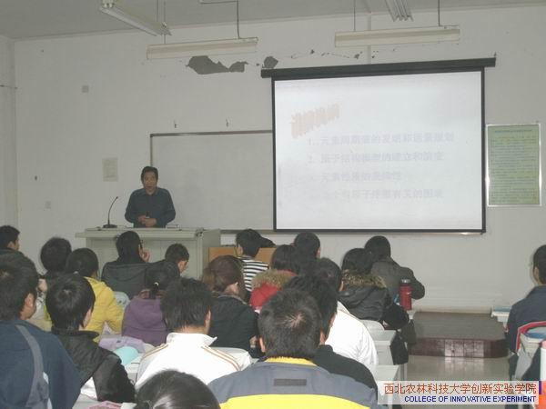 高教授分别为我院09级国家生命科学与技术人才培养基地班、植物科学类创新实验班、动物科学类创新实验班和轻工纺织食品类创新实验班共264名学生讲授了“原子结构”、“氧化还原反应”等前沿知识内容。高教授讲课重点突出,思路清晰,鼓励学生积极思考,敢于设想和质疑,提高创新能力。这一课给同学们留下了深刻的印象。