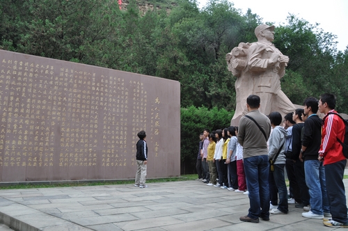 在两天的行程中,同学们怀着对老一辈无产阶级革命家的敬仰之情,先后来到延安革命纪念馆、凤凰山、张思德纪念碑、枣园等进行实地参观学习。在延安革命纪念馆,同学们通过观看珍贵革命文物、文献和照片,进一步加深了对党中央、毛主席在延安领导中国人民英勇斗争的光辉历史的认识;在凤凰山,同学们认真倾听讲解员细致讲解先驱者的故事,认真观看纪念白求恩图片展,并在讲解员的带领下学习了《纪念白求恩》,对白求恩同志的伟大革命精神表达崇高敬意;在张思德纪念碑,同学们进一步了解了张思德同志全心全意为人民服务的崇高精神,并高声朗读《为人民服务》,表达了牢记为人民服务宗旨,报效祖国的决心;在枣园,同学们认真参观了中央书记处小礼堂、毛泽东、周恩来、刘少奇、朱德、任弼时、张闻天、彭德怀旧居等,对党中央在此领导人民开展整风运动、大生产运动、筹备党的“七大”,领导全国军民取得抗日战争胜利等重大革命事件有了更深入的认识,更加坚定了共产主义的理想信念。