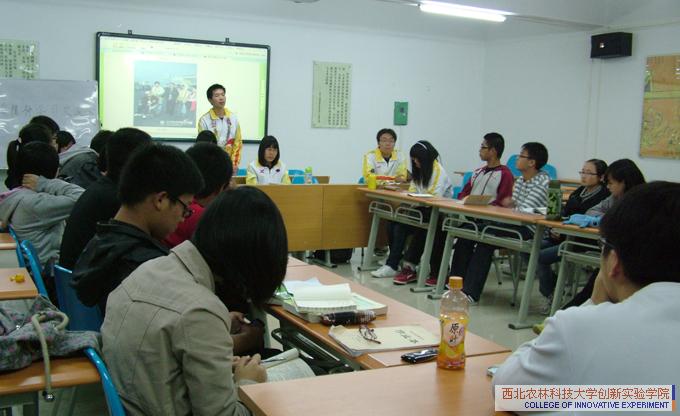 世园会市场开发部志愿者负责人张洁与班级学生干部交流讨论