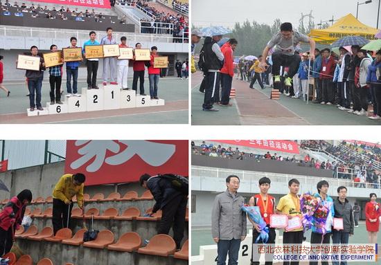 在刚刚落下帷幕的我校2013年田径运动会中,在全院师生的共同努力下,我院在本次运动会中取得优异成绩,实现了新的突破。在全校19个院系中获得男子团体第八名,同时生工基地111班孙亚琛、生技111班吴鹏飞分别取得男子铅球、男子三级跳的冠军。