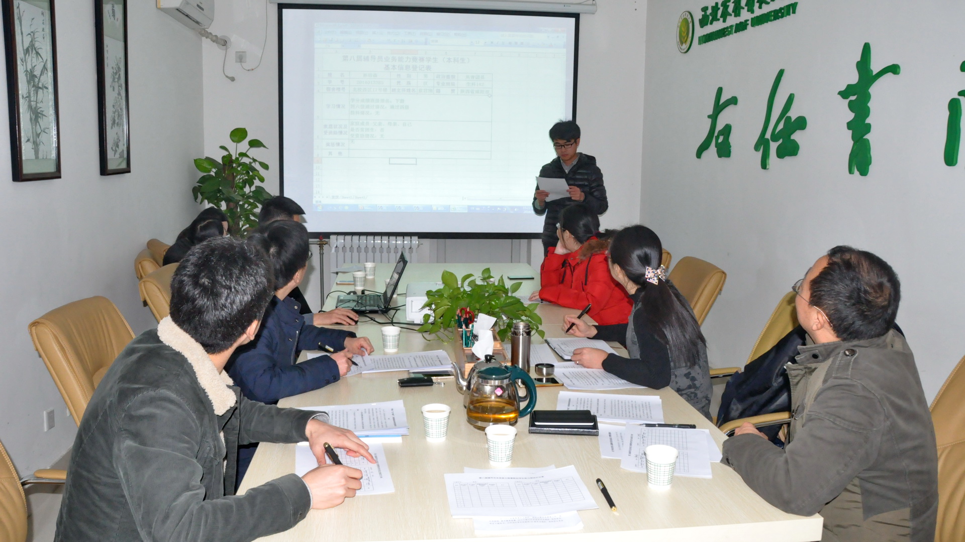 12月19日,我院在右任书院17号楼107会议室举行了辅导员业务能力竞赛初赛,按照学校要求,4名辅导员参加了相关环节比赛,学院领导和负责我院联系人学生处马迎涛老师等人担任评委。