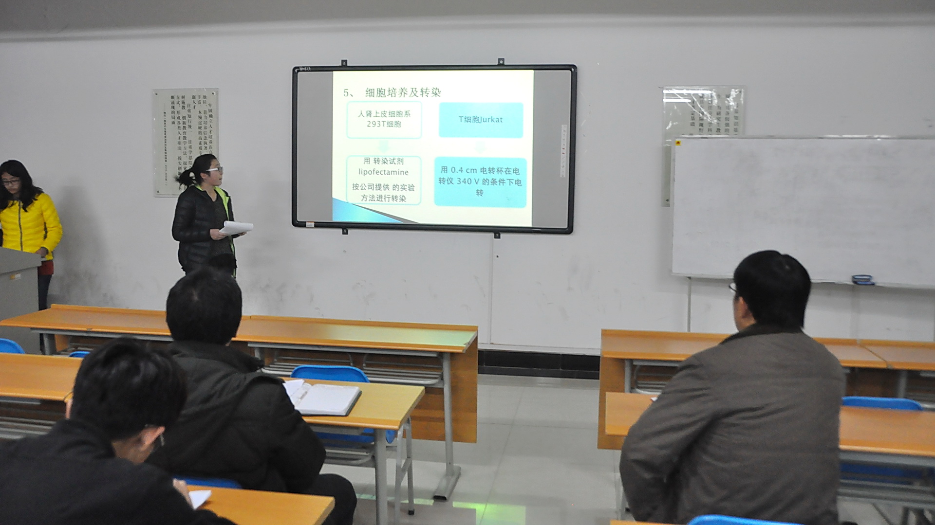 在进行此次汇报之前,同学们认真进行了论文的选择和研究,对论文的内容进行总结并制作成ppt进行汇报交流。本次汇报共有20名学生参加,2人一组,共10组。进行汇报的主题有:CRISPR/CAS9的系统基因修饰技术、羊毛及动物毛发弯曲形成的生物学机理研究进展等课题。
