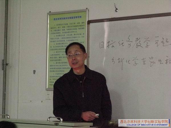 2009年11月18日上午8点,在创新实验学院植科091、092班的《无机及分析化学》课堂上,黄森副教授运用目标任务教学法,进行了教学方式方法的改革尝试。