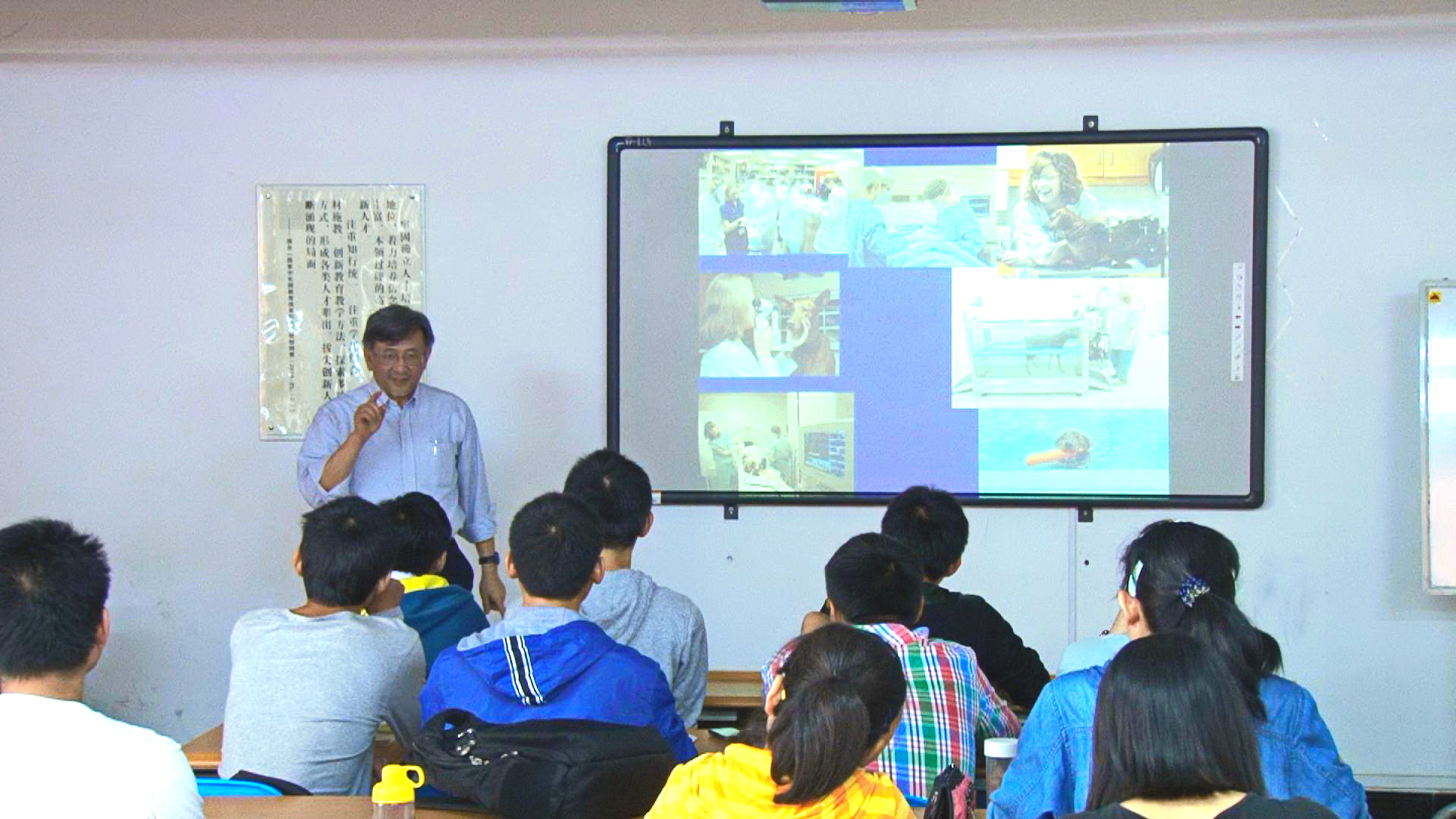 在报告会的开始,王教授与同学们就目前专业学习和实验课题展开了互动和交流,并耐心地解答了同学们的疑问。随后,王教授从宠物健康和军事检疫入手,结合实际例子,向同学们详细阐述了兽医与人类生活和军事发展之间的密切关系。王教授向同学们介绍了美国大学兽医专业的相关情况,让同学们对田纳西大学的教学模式,完备的兽医治疗系统有了进一步的了解。讲座过程中同学们勇于提出问题,积极地展开讨论,王教授精彩的演讲和详细的解答让在场同学受益匪浅。