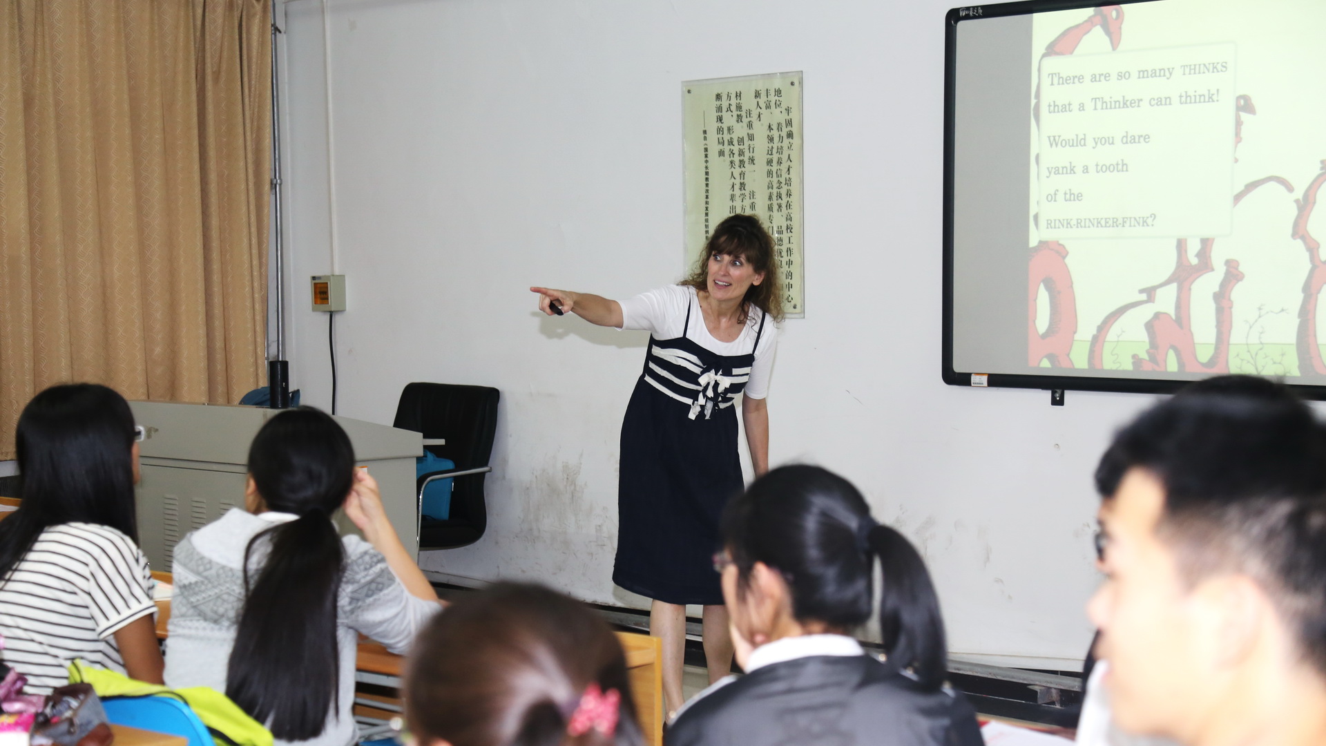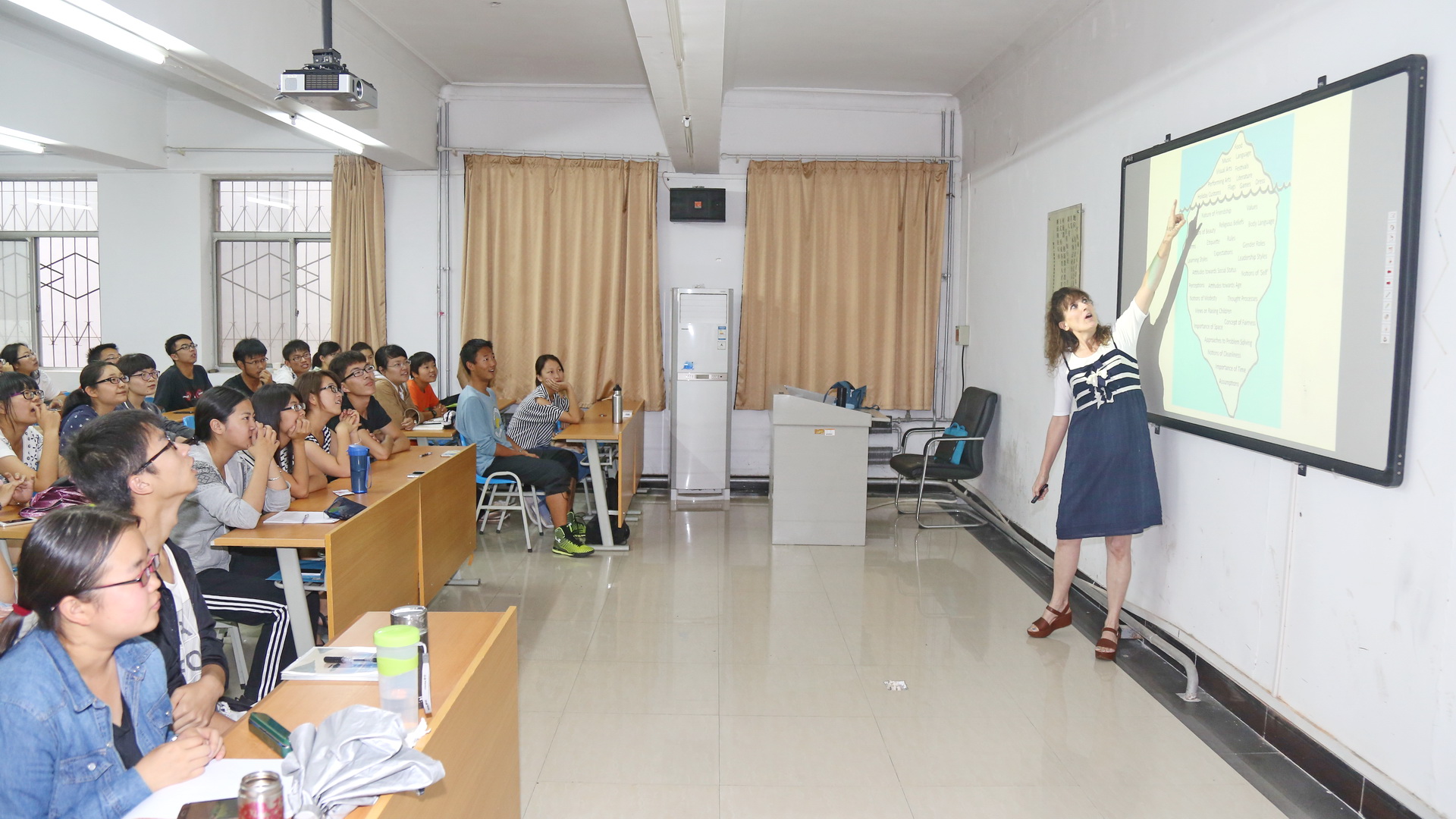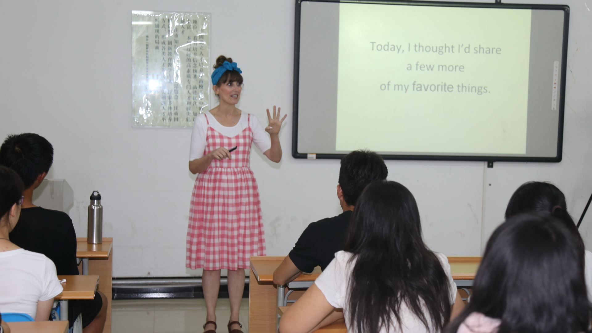 美国外教老师Teresa Jones进行《Oral English & American Culture》课程的授课