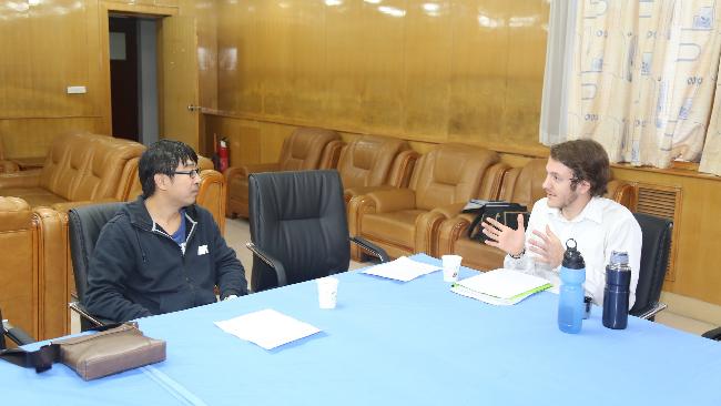 首先,John Brewer向邹宇锋老师介绍了《外语技能I》课程的教学大纲及自己的授课方法,并就中国学生存在的课堂学习问题与邹老师进行了研讨。