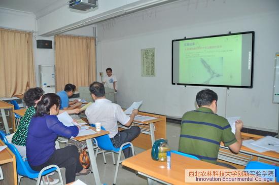 会议过程紧张有序,每组参与评审的同学都采用ppt介绍的方式汇报了自己参与的项目,评审专家们结合结题申请书,项目总结报告以及现场汇报内容,对项目申请人进行了一系列细致的提问,并对项目的成果,创新性,及实际意义进行了评估。经过专家组综合评审,19项目均达到了结题的各项要求,其中“高效木质素降解工程菌的构建”、“禾谷镰刀菌(Fusarium graminearum)染色体上独有基因敲除及功能验证”、“秦川牛Wnt7a基因SNP分析及其对生长发育性状的遗传效应研究”三个项目被评为结题优秀项目。对于中期检查项目,专家组在认真听取了项目组汇报、查阅相关的实验记录、现场质询的基础上,对各个项目实施中存在的问题提出了具体的建议,对于部分进度缓慢,实施效果差的项目给予了批评,并要求及时进行整改。