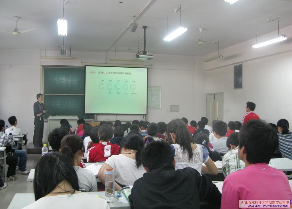 5月12日上午10时10分,在八号教学楼118教室,马柏林老师为我院10级生命创新101-104班同学讲授《有机化学》课程。马老师运用板书结合多媒体的教学方式来进行本次开放式教学。
