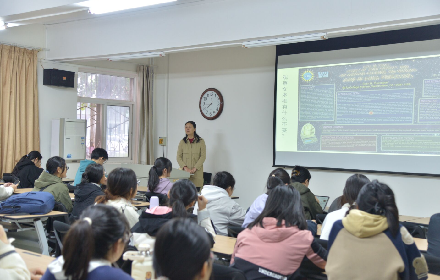 报告会上,郑惠玲教授以学术海报“信息传播效率”与“视觉吸引力”为核心,为同学们展开指导讲解: