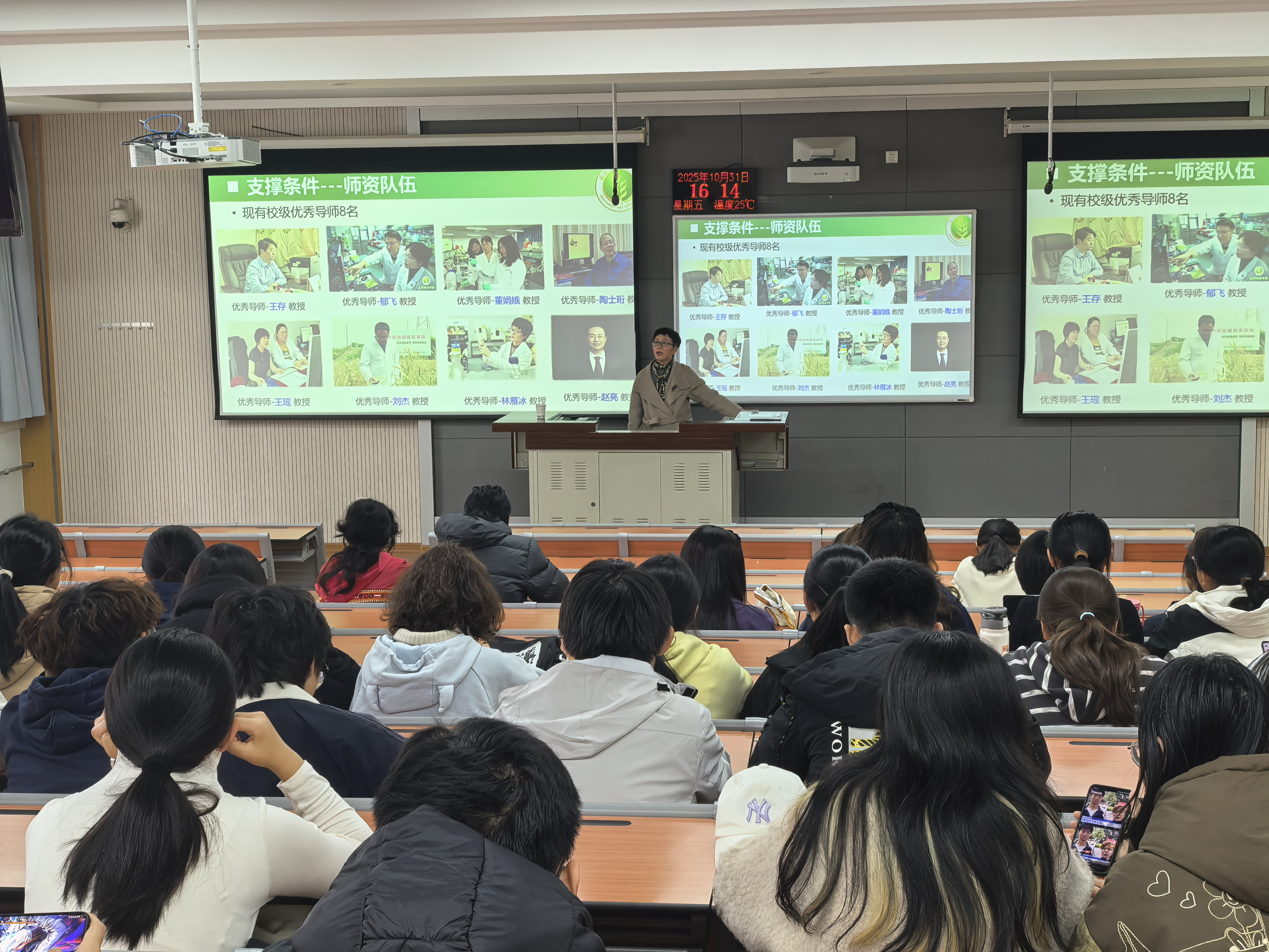为增进学生对生命科学学科前沿动态与科研进展的了解,激发科研兴趣,消除对未来科研学习中的忧虑与困惑,10月31日下午,由创新学院主办的“生命科学学科介绍及科研进展”报告会在北校区8号教学楼N8712教室顺利举行。本次报告会特邀生命科学学院林雁冰教授与卫亚红副教授,2025级植物生产类(创卓)四个班的全体学生共同参与,展开了一场内容充实、视野开阔的学科交流活动。